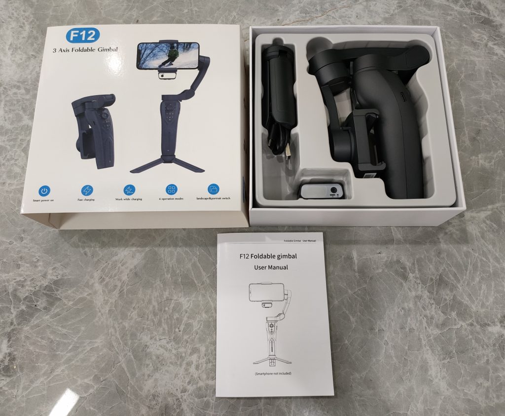 F12 Three-axis Foldable Handheld Gimbal 360⁰ Rotate AI Facial Intelligent Tracking Phone Stabilizer With Sensor Fill Light & Stand